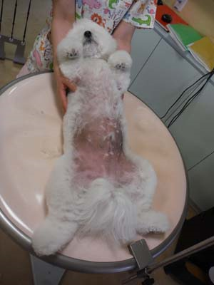 お腹のバリカンをかける時はこんな格好になってるんです!!