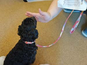 あんこちゃんは、キラキラのお目目でお母さんの手の合図をしっかりと見ていました!