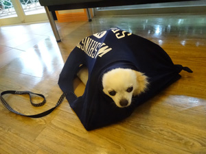 後肢がなかなか入らない豆助くん